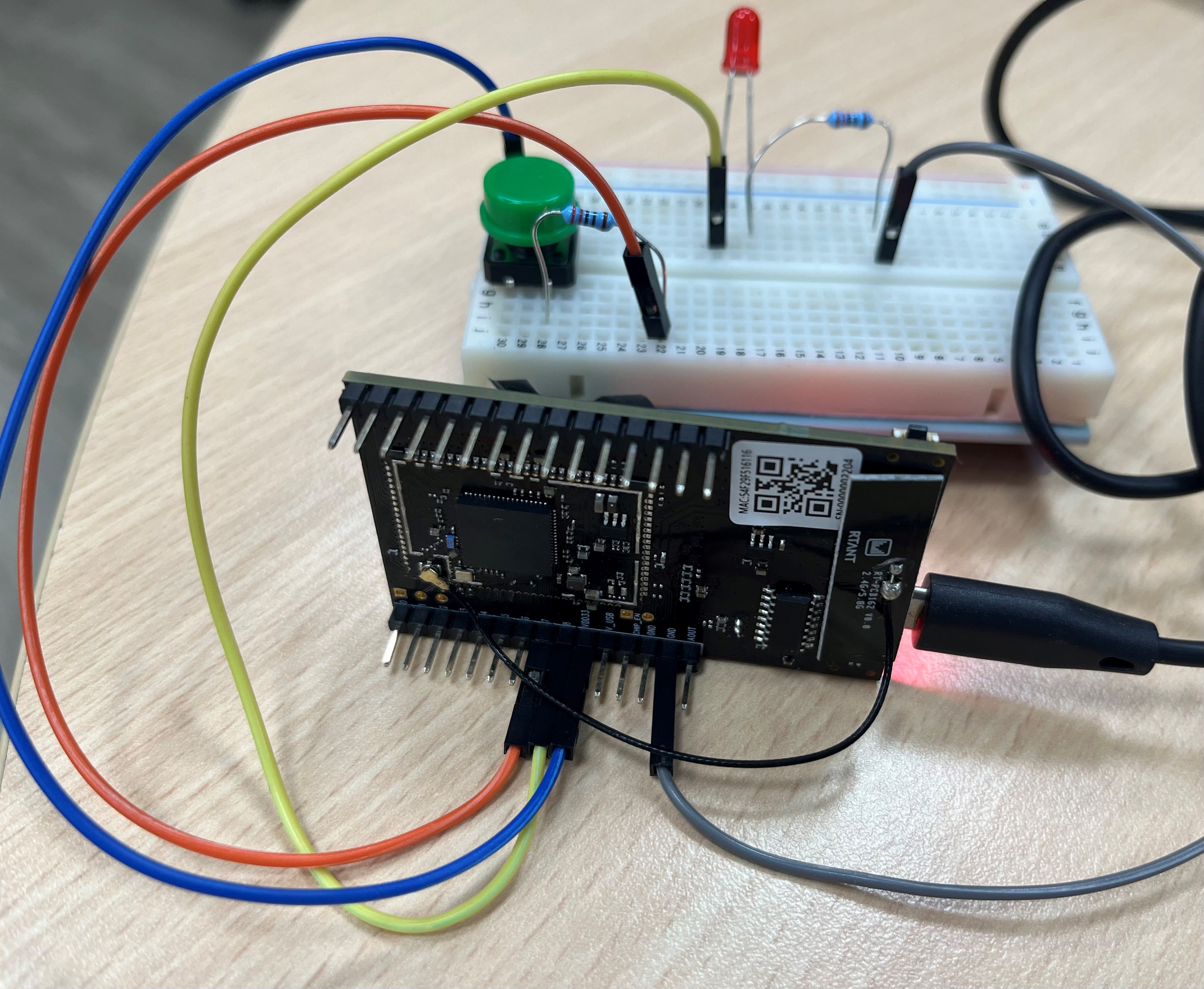 #define LED_PIN 8 #define BUTTON_PIN 7 void setup() { pinMode(LED_PIN, OUTPUT); pinMode(BUTTON_PIN, INPUT); } void loop() { if (digitalRead(BUTTON_PIN) == HIGH) { digitalWrite(LED_PIN, HIGH); } else { digitalWrite(LED_PIN, LOW); } } -
