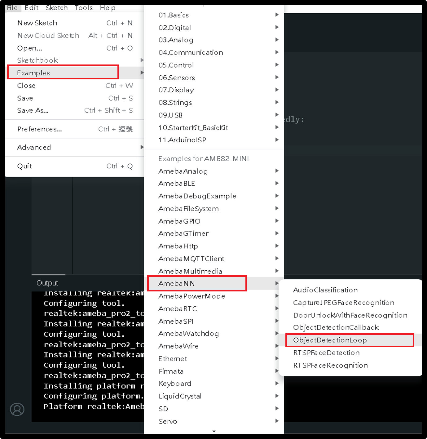 將以下程式碼貼至ObjectDetectionLoop的.ino檔內